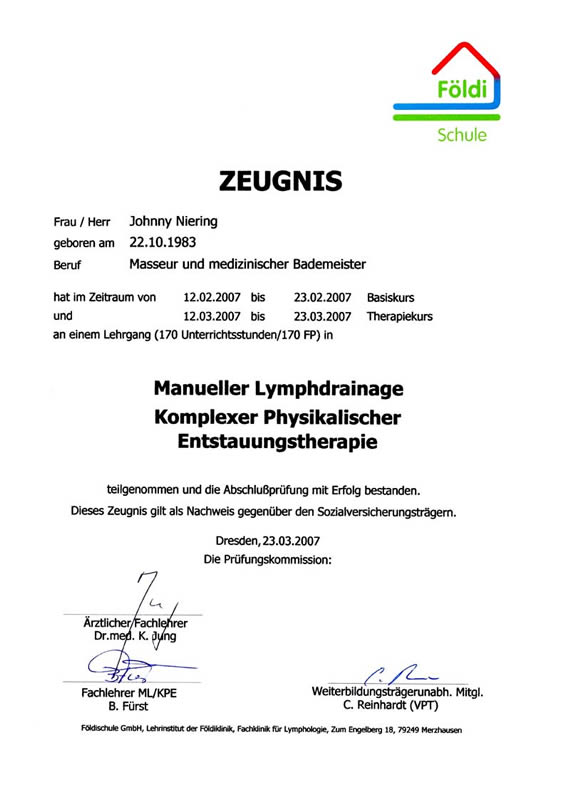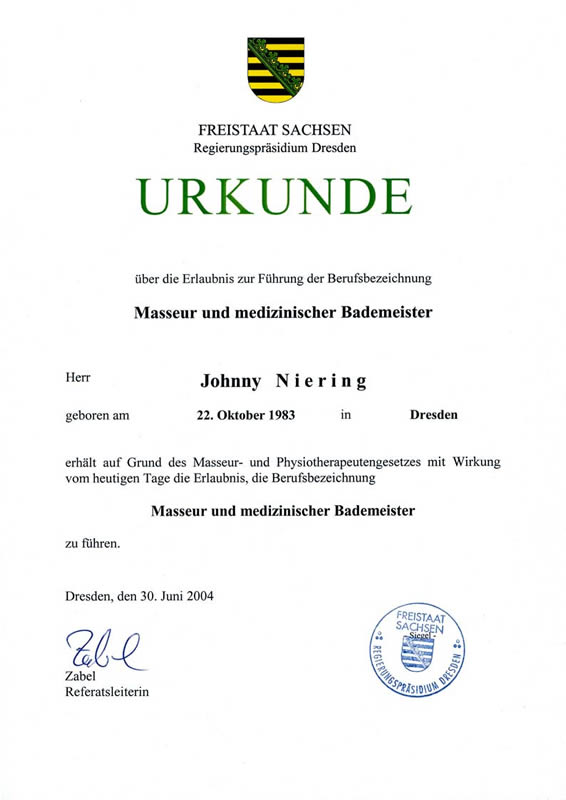 - Staatlich anerkannter Masseur u. med. Bademeister
